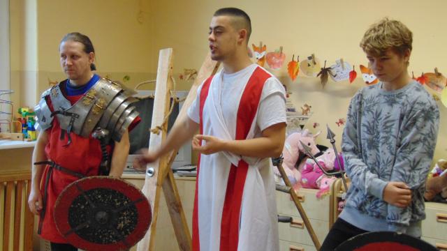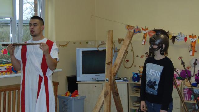 16 listopada grupa "Rekonstrukto" z Lublina przeniosła nas do czasów starożytnego Rzymu. Mogliśmy na chwilę stać się legionistami, patrycjuszami,a niektórzy nawet sami zgłosili się do roli... niewolników. Szybko odzyskali jednak upragnioną wolność,a zakucie w dyby wspominać będą z uśmiechem.