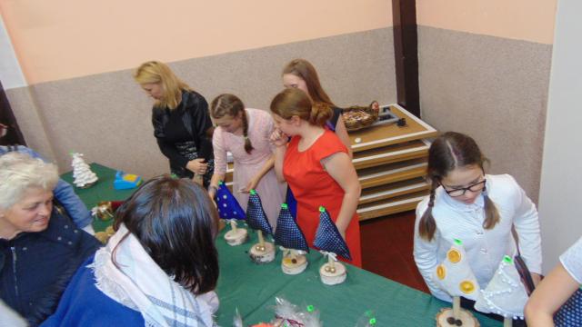 Dziękujemy serdecznie wszystkim, którzy zechcieli poświęcić swój cenny, przedświąteczny czas, aby być z nami. Gościliśmy Księdza Kanonika Roberta Rożańskiego, Burmistrza Ujścia – p. Romana Wroteckiego, Przewodniczącego Rady Miasta w Ujściu – p. Marka Jankowskiego, Radnych Ujścia – p. Jana Maślaka, p. Janusza Chamarczuka, sołtysa Nowej Wsi Ujskiej – p. Jana Hajta, Dyrektora UDK – p. Przemysława Zdunka, uczestników Warsztatów Terapii Zajęciowej w Ujściu oraz bardzo wielu mieszkańców naszych wsi i gminy. Atmosferę świąt tworzyły dodatkowo rozdawane kolorowe pierniczki ( przygotowane przez rodziców, uczniów i wolontariuszy naszej szkoły ), jak również kiermasz z przepięknymi pracami członków SU i opiekuna – p. Magdaleny Kin. Ozdoby cieszyły się olbrzymim zainteresowaniem kupujących i należało ustawić się w długiej kolejce, aby zdobyć wybraną pracę. Dzięki temu Samorząd Uczniowski pozyskał na potrzeby uczniów naprawdę pokaźną sumę! Cieszymy się ogromnie.