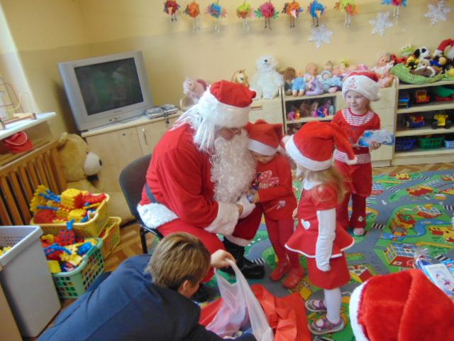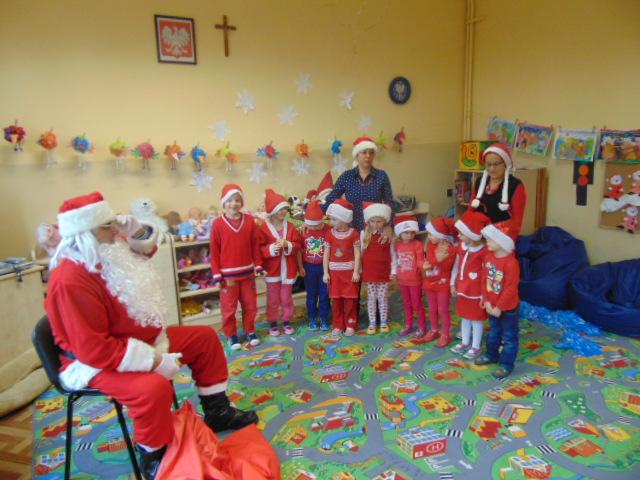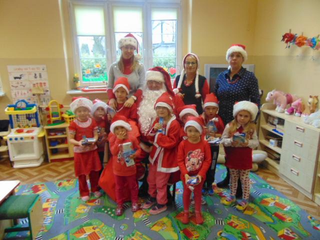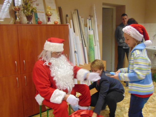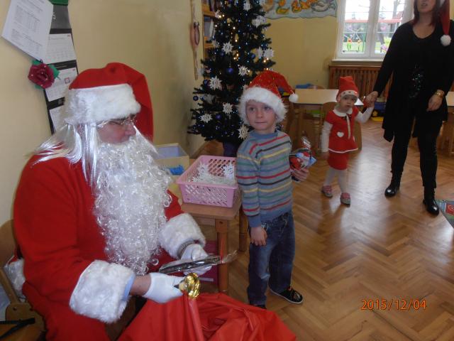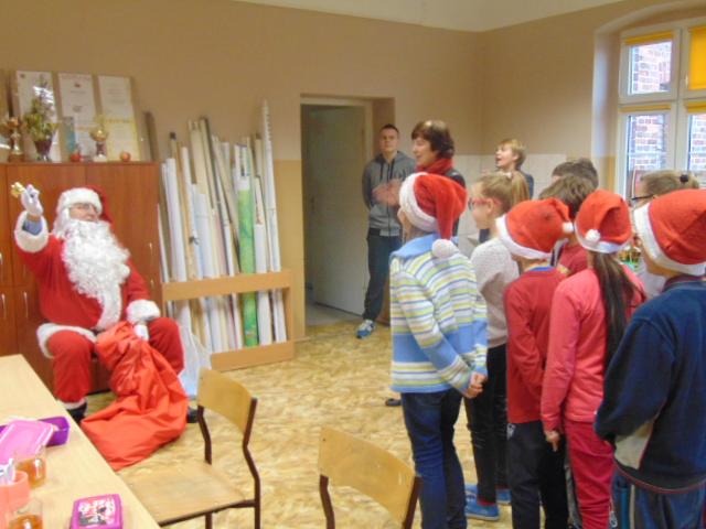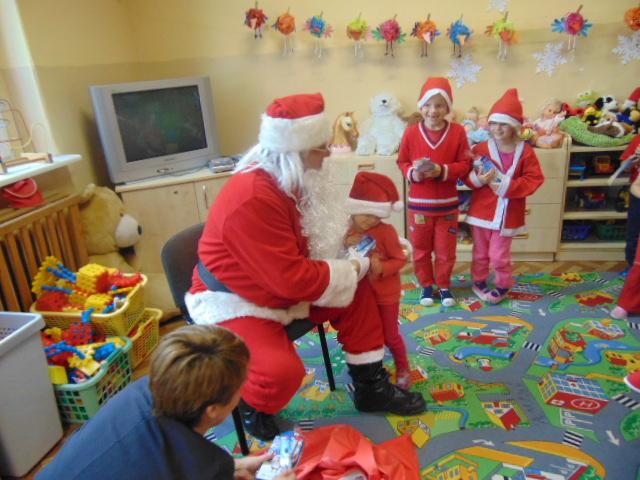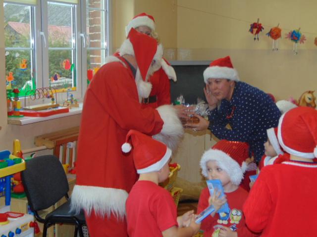 Mikołajki przypadają 6 grudnia, jednak dostojny pan siwą brodą zrobił dzieciom niespodziankę i zjawił się u nas dwa dni wcześniej. Nie zapomniał o nikim. Najpierw złożył wizytę przedszkolakom, później uczniom (w obu miejscowościach). Choć worek starszego pana był ciężki, niełatwo było otrzymać prezenty. Dzieci musiały zapracować sobie tańcem, piosenką bądź wierszem. Święty z zadowoleniem obejrzał występy, pożegnał się i ruszył w drogę. Przedszkolaki nie zdążyły jeszcze ochłonąć z emocji, gdy… odwiedził je następny Mikołaj. Miłych niespodzianek nigdy za wiele, więc maluchy, choć nieco zdezorientowane, z radością powitały kolejnego gościa. Znów śpiewały, tańczy i recytowały, jednak tym razem ich popisy obejrzeli także: burmistrz Ujścia – pan Roman Wrotecki, pani dyrektor Grażyna Gwardzik oraz pani dyrektor Małgorzata Walerowska. Występ został nagrodzony gromkimi brawami oraz słodkimi upominkami od Mikołaja. Najodważniejsze dzieci, dziękując za słodkości, wyściskały sympatycznego staruszka. Jednak nie każdemu starczyło odwagi. Niektórym maluchom przy odbiorze słodkości towarzyszyły panie.