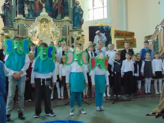 Kolejne urodzinowe śpiewanie dla Jana Pawła II za nami. Jak co roku i tym razem pragnęliśmy się włączyć w świętowanie. Na tę okazję przygotowaliśmy dwie piosenki. Jedną z nich pt. „Cztery słonie” wykonały dzieci z klas I-III ,zaś drugą pt. „Naprzeciw marzeniom” uczniowie klas IV-VI.