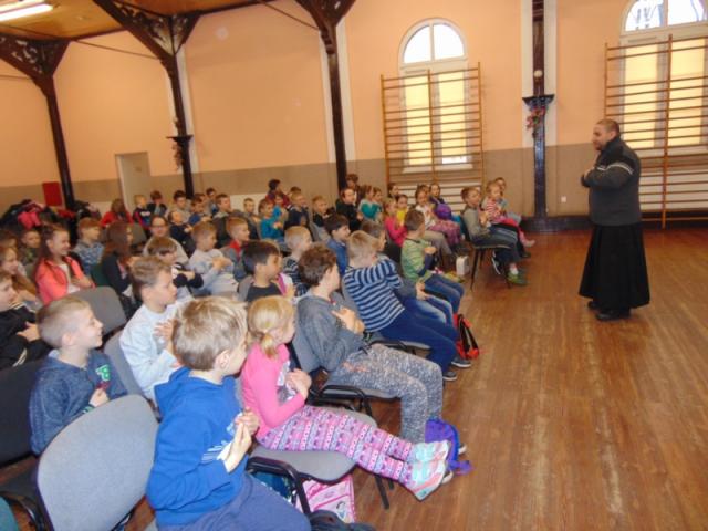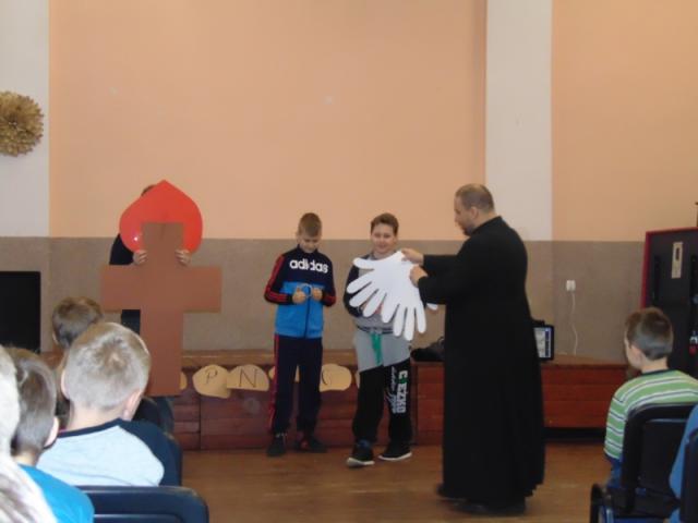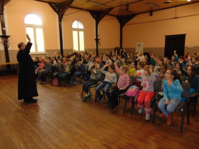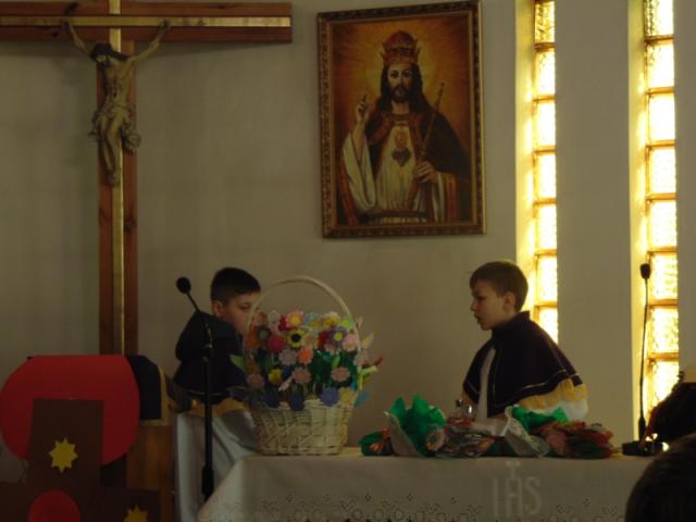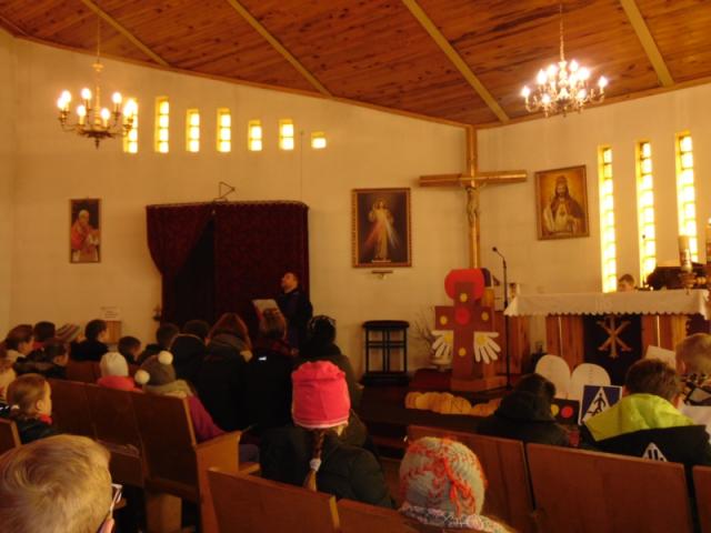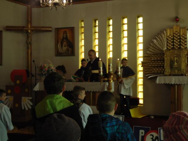 W dniach 20-22 marca przeżywaliśmy szkolne rekolekcje wielkopostne. Hasłem przewodnim tegorocznych spotkań były grzechy główne, których unikanie pozwoli kroczyć drogą ku niebu. Pomocny w wędrówce do nieba okazał się niebolot. Przeżywanie rekolekcyjnych dni rozpoczęliśmy więc od budowy takiego niebolotu. Pomagał nam w tym ksiądz Tomasz – rekolekcjonista. W planie były również nauki rekolekcyjne, Droga Krzyżowa, film z przesłaniem, co w życiu jest najważniejsze i piosenki związane z tematem rekolekcji. Dzieci bardzo aktywnie włączyły się w czytanie tekstów liturgicznych, w śpiewanie pieśni i piosenek oraz zadania plastyczne. Świadectwem tego, że idą za Chrystusem były rysunki niebolotów i pięknie wykonane kwiaty z dobrymi uczynkami, złożone jako dar na Ołtarzu.